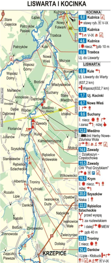 Liswarta wraz ze swoim największym dopływem Kocinką jest świetną propozycją dla kajakarzy planujących wypoczynek w rejonie Jury Krakowsko – Wieluńskiej. Liswarta stanowi dopływ rzeki Warty, a miejscowość Kule, to miejsce, gdzie dochodzi do ich spotkania. Liswarta jest rzeką bardzo urokliwą z dość wartkim nurtem, obfitującą w bystrza oraz wysokie, piaszczyste brzegi. Cały spławny, proponowany odcinek, zaczyna się w Dankowie gm. Lipie i ma długość około 31 kilometrów, dlatego dzielony jest on zazwyczaj na dwa dni spływu.